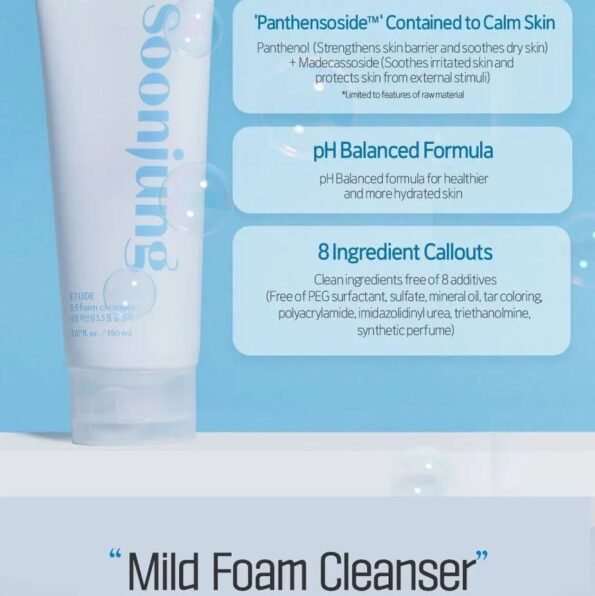 - A foam cleanser offers mild cleansing with hypoallergenic formula in a pH5.5 value.