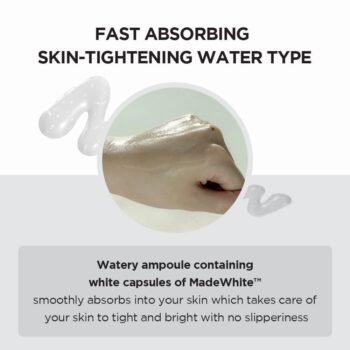 Madagascar Centella Tone Brightening Capsule Ampoule is a light, watery ampoule that absorbs quickly without leaving a film. It features encapsulated Madecassoside (MadeWhite™) and a Triple Complex (Niacinamide, Tranexamic acid, 3-O-Ethyl ascorbic acid) that works in synergy to brighten and even your skin tone.