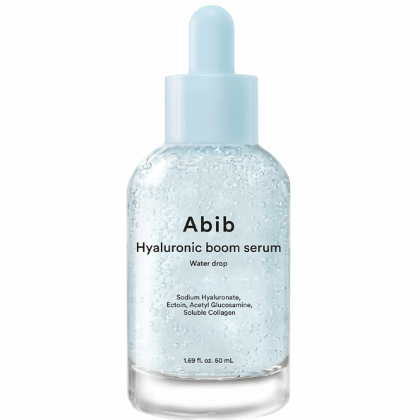 - Abib Hyaluronic Boom Serum Water Drop – a hydrating serum designed for daily facial care, formulated to deliver deep moisture, improve skin elasticity, and enhance overall skin balance.