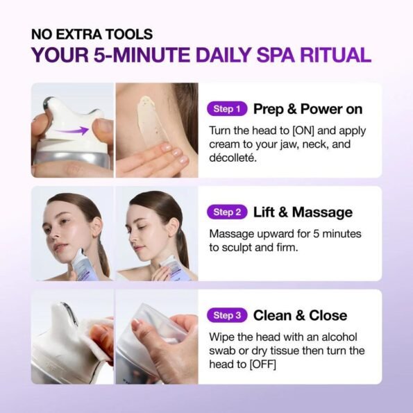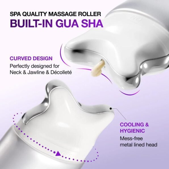 - Cooling Massager: A wide W-shaped massage head delivers an instant cooling sensation while gliding along the jawline and neck. Helps calm the skin and support contour care with a refreshing lymphatic drianage massager effect.