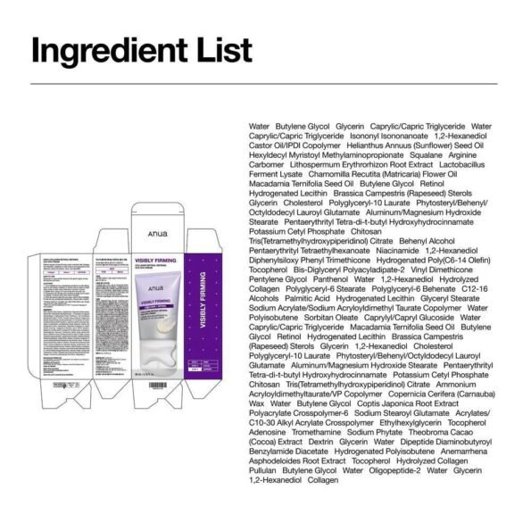 Water, Butylene Glycol, Glycerin, Caprylic/Capric Triglyceride, Water, Caprylic/Capric Triglyceride, Isononyl Isononanoate, 1,2-Hexanediol, Castor Oil/IPDI Copolymer, Helianthus Annuus (Sunflower) Seed Oil, Hexyldecyl Myristoyl Methylaminopropionate, Squalane, Arginine, Carbomer, Lithospermum Erythrorhizon Root Extract, Lactobacillus Ferment Lysate, Chamomilla Recutita (Matricaria) Flower Oil, Macadamia Ternifolia Seed Oil, Butylene Glycol, Retinol, Hydrogenated Lecithin, Brassica Campestris (Rapeseed) Sterols, Glycerin, Cholesterol, Polyglyceryl-10 Laurate, Phytosteryl/Behenyl/Octyldodecyl Lauroyl Glutamate, Aluminum/Magnesium Hydroxide Stearate, Pentaerythrityl Tetra-di-t-butyl Hydroxyhydrocinnamate, Potassium Cetyl Phosphate, Chitosan, Tris(Tetramethylhydroxypiperidinol) Citrate, Behenyl Alcohol, Pentaerythrityl Tetraethylhexanoate, Niacinamide, 1,2-Hexanediol, Diphenylsiloxy Phenyl Trimethicone, Hydrogenated Poly(C6-14 Olefin), Tocopherol, Bis-Diglyceryl Polyacyladipate-2, Vinyl Dimethicone, Pentylene Glycol, Panthenol, Water, 1,2-Hexanediol, Hydrolyzed Collagen, Polyglyceryl-6 Stearate, Polyglyceryl-6 Behenate, C12-16 Alcohols, Palmitic Acid, Hydrogenated Lecithin, Glyceryl Stearate, Sodium Acrylate/Sodium Acryloyldimethyl Taurate Copolymer, Water, Polyisobutene, Sorbitan Oleate, Caprylyl/Capryl Glucoside, Water, Caprylic/Capric Triglyceride, Macadamia Ternifolia Seed Oil, Butylene Glycol, Retinol, Hydrogenated Lecithin, Brassica Campestris (Rapeseed) Sterols, Glycerin, 1,2-Hexanediol, Cholesterol, Polyglyceryl-10 Laurate, Phytosteryl/Behenyl/Octyldodecyl Lauroyl Glutamate, Aluminum/Magnesium Hydroxide Stearate, Pentaerythrityl Tetra-di-t-butyl Hydroxyhydrocinnamate, Potassium Cetyl Phosphate, Chitosan, Tris(Tetramethylhydroxypiperidinol) Citrate, Ammonium Acryloyldimethyltaurate/VP Copolymer, Copernicia Cerifera (Carnauba) Wax, Water, Butylene Glycol, Coptis Japonica Root Extract, Polyacrylate Crosspolymer-6, Sodium Stearoyl Glutamate, Acrylates/C10-30 Alkyl Acrylate Crosspolymer, Ethylhexylglycerin, Tocopherol, Adenosine, Tromethamine, Sodium Phytate, Theobroma Cacao (Cocoa) Extract, Dextrin, Glycerin, Water, Dipeptide Diaminobutyroyl Benzylamide Diacetate, Hydrogenated Polyisobutene, Anemarrhena Asphodeloides Root Extract, Tocopherol, Hydrolyzed Collagen, Pullulan, Butylene Glycol, Water, Oligopeptide-2, Water, Glycerin, 1,2-Hexanediol, Collagen