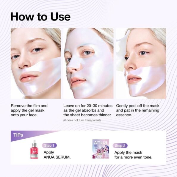 ANUA Heartleaf 70 Soothing Collagen Mask is a hydrogel mask formulated with Heartleaf Water and Low molecular collagen to deeply hydrate, soothe, smooth and firm skin.