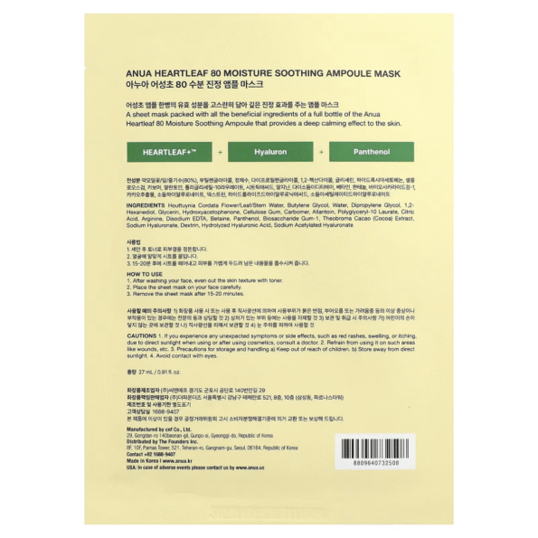 17 reviews for Anua Heartleaf 80 Moisture Soothing Ampoule Mask 27ml