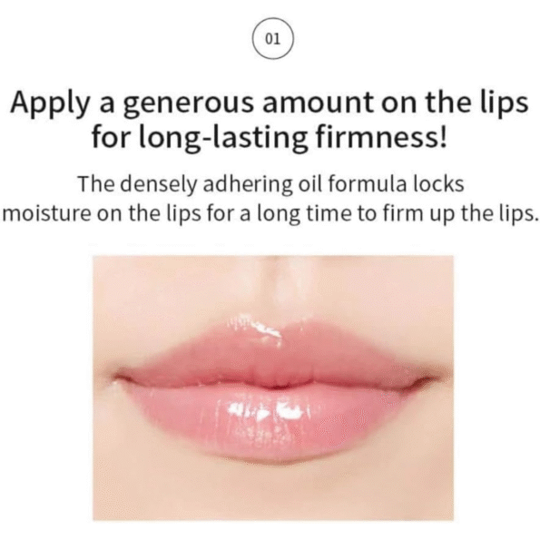 - Long-Lasting Moisture: Densely adhering oil formula ensures prolonged hydration, keeping lips firm and plush.