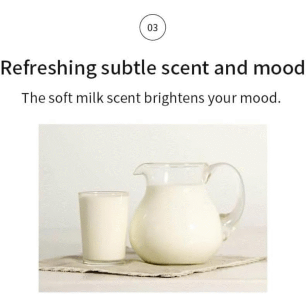 - Subtle Scent: Infused with a soft milk scent that uplifts and refreshes the mood.