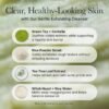 - Reduces irritation and texture: Green tea leaf extract calms irritated skin while offering light exfoliation for a softer, more refined texture.