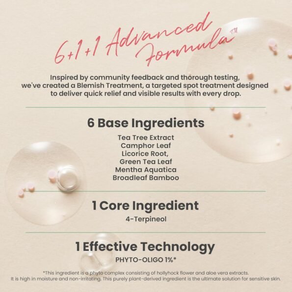 - Enriched with 4-Terpineol, PHOTY-OLIGO and plant-based ingredients (such as tea tree extracct) to effectively soothe irritated skin and deliver intense hydration.