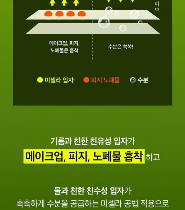 - The lipophilic particles absorb makeup, sebum, and wastes, while hydrophilic particles applied with micellar technology provide clear and moisturizing cleansing.