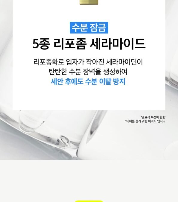- The small liposome ceramidine creates a firm moisture barrier to inhibit moisture loss after cleansing.
