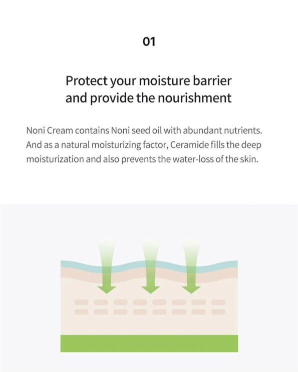 - A highly nourishing cream with 55% Noni Extract and 1% Noni Seed Oil to soothe and moisturize dry, damaged skin.