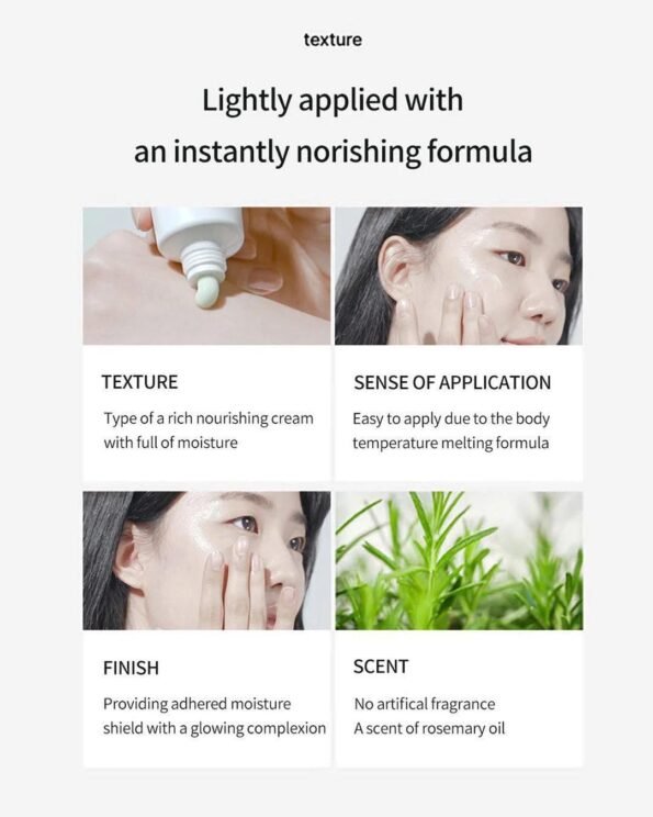 - Melts into skin with a light, smooth texture and leaves a rosemary scent.