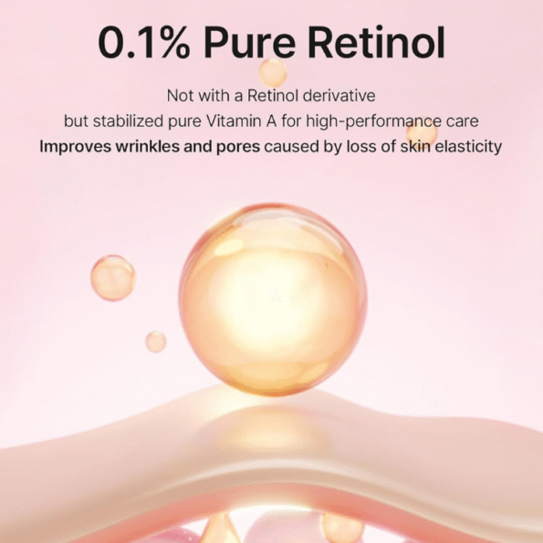 Innovative skincare product with pure retinol and a peptide complex to help address skin concerns such as wrinkles, uneven texture and enlarged pores.