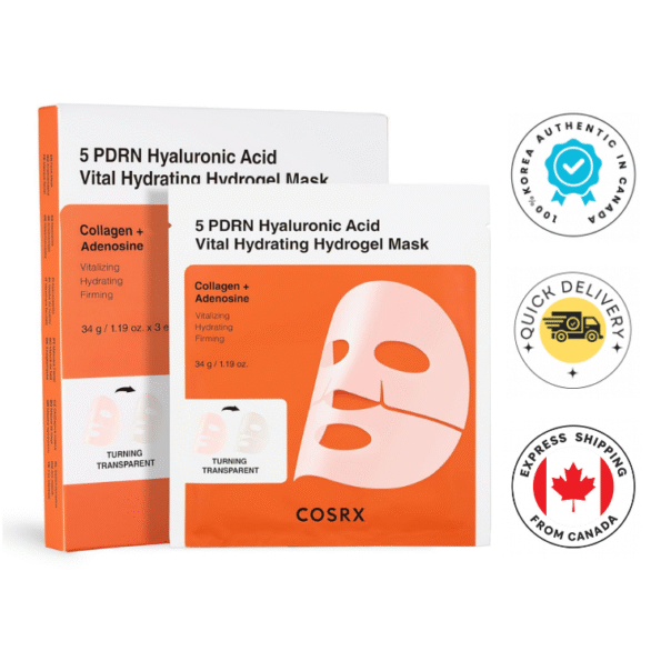 COSRX 5 PDRN Hyaluronic Acid Vital Hydrating Hydrogel Mask (3 Sheets) is a premium Korean hydrogel mask treatment designed to deeply hydrate, revitalize dull skin, and boost radiance with advanced actives. This high‑performance mask combines 5 types of PDRN complexes (including salmon DNA, centella asiatica, rice, lactobacillus, and sea grapes) with 8 forms of hyaluronic acid to deliver multi‑layer hydration while improving elasticity, firmness, and overall skin vitality.