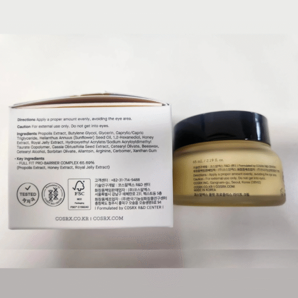 Key Ingredients – Full fit pro-barrier complex 65.69% (Propolis Extract, Honey Extract, Royal Jelly Extract).