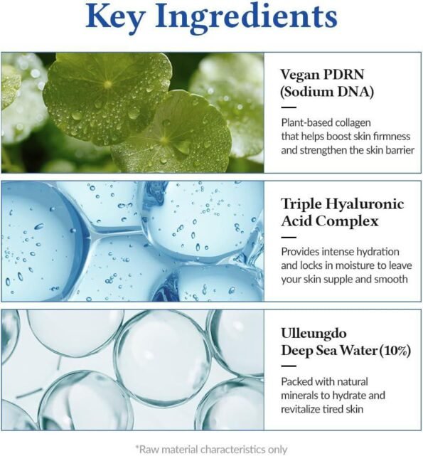 - Infused with plant-based PDRN and 10% Ulleungdo deep sea water to lock in moisture and enhance skin elasticity for a radiant complexion.