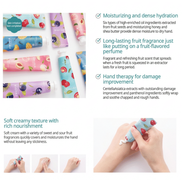 - A high-moisturizing hand cream enriched with Fruit Seed Extracts, Shea Butter and Honey Extract which moisturize and nourish dry hands effectively.