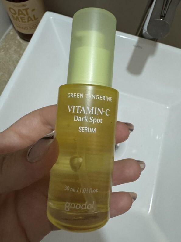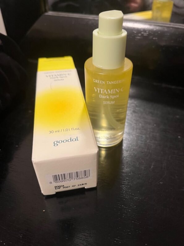 GOODAL Green Tangerine. This item is very well working my brown spot on my face and this is 2nd time I ordered and I love it!! It is not expensive and it feels so smooth on my face and neck.