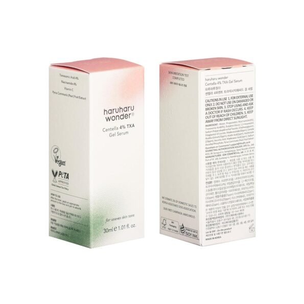 Haruharu TXA Gel Serum – A lightweight gel serum powered by 4% Tranexamic Acid and Centella Asiatica to visibly fade dark spots, calm irritation, and brighten dull skin. Ideal for those dealing with hyperpigmentation, uneven skin tone, and acne marks.