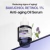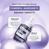 - A wrinkle-care facial oil enriched with Retinol and Bakuchiol to help fade fine lines and wrinkles, while enhancing skin elasticity to promote a plump complexion.