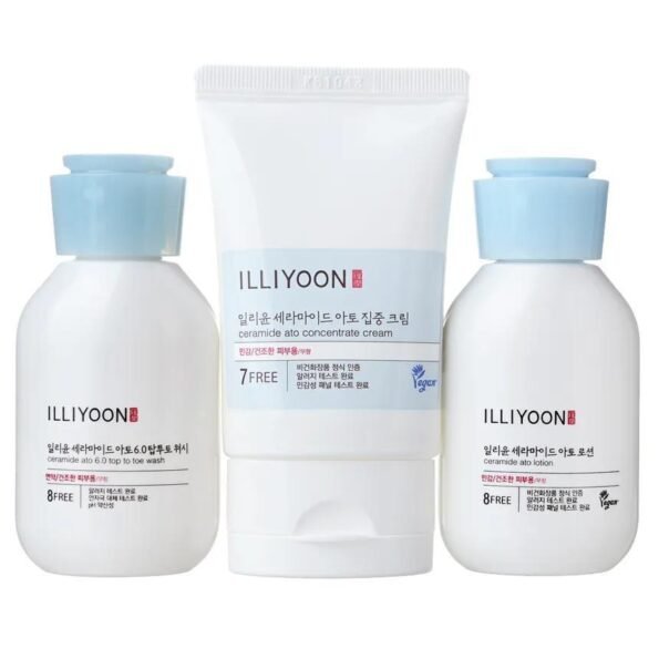 The ILLIYOON Ceramide Ato Travel Kit (3 Pcs) brings together the brand’s iconic moisturizing and barrier-repairing formulas in convenient mini sizes. Powered by ILLIYOON’s patented Ceramide Skin Complex™, this soothing set provides deep hydration and relief for dry, sensitive, or irritated skin.