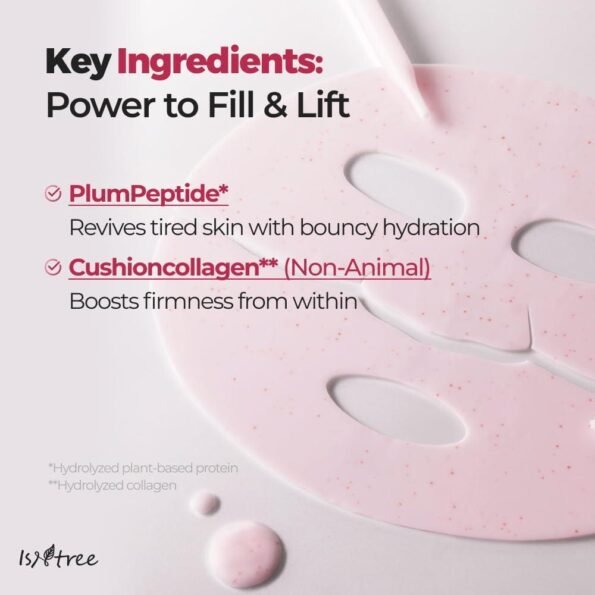 A firming and revitalising hydrogel mask enriched with collagen and Isntree’s signature Plum Peptide – a low-molecular plant-derived peptide from Anseong cherry plums. This multi-functional mask visibly plumps and brightens the complexion while improving elasticity and moisture retention.