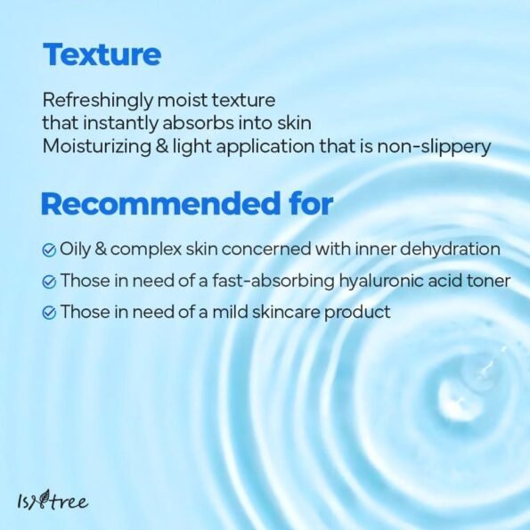 - A quick-absorbing, vegan Hyaluronic Acid toner infused with deep seawater from Ulleung Island, Korea, that deeply hydrates and soothes skin.