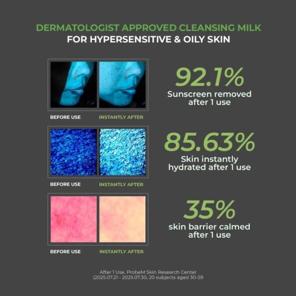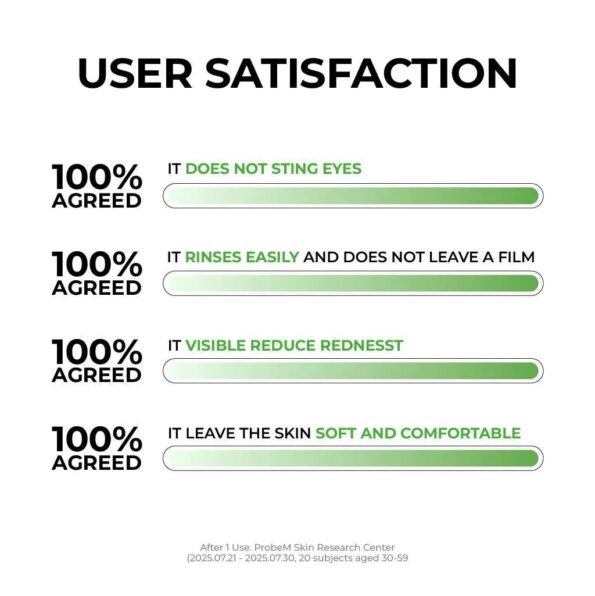 Shows immediate skin barrier improvement and hydration enhancement with one use, cleansing dirt thoroughly while leaving moisture.