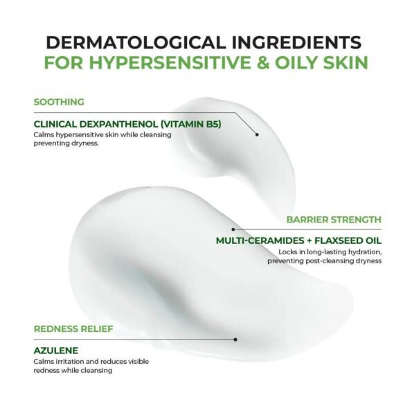 - A soothing cleansing milk infused with Dexpanthenol and Azulene to calm irritation and redness and prevent dryness, while removing sunscreen and everyday makeup without stripping skin.