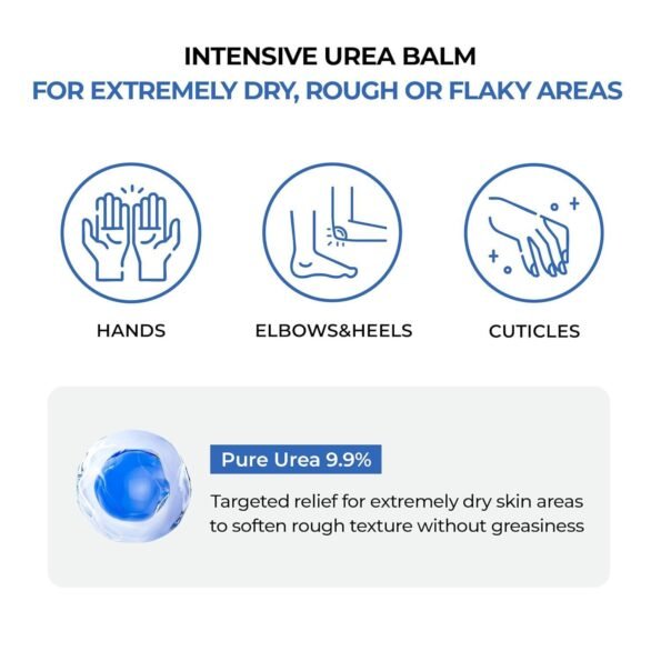 - INTENSIVE MULTI BALM FOR DRY AREAS: This Korean balm features Pure Urea 9.9% (99,000ppm) for targeted relief on extremely dry, rough, or cracked skin. Ideal for hands, elbows, knees, heels, and cuticles needing extra care.