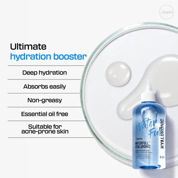 The Jumiso – Waterfull Hyaluronic Acid Toner 250ml is a hydrating and refreshing toner designed to deliver intense moisture to your skin. Formulated with premium hyaluronic acid, this toner helps to prep your skin for subsequent skincare products while enhancing overall skin hydration.