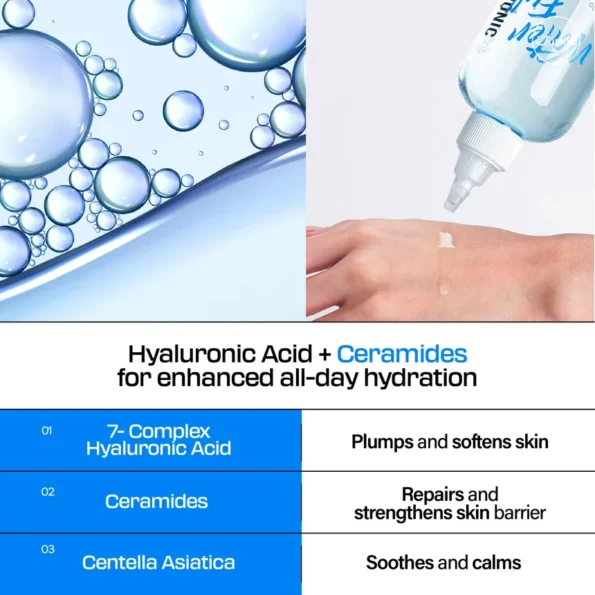 - Powered by Waterfull 7-Complex Hyaluronic Acid: Hyaluronic acids in small, middle, and high molecules are absorbed into different layers of the skin to moisturize deep inside the skin.