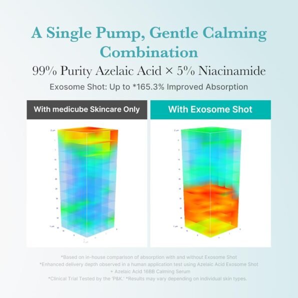 - One Exosome Shot for Daily Hydration & Recovery Care: Delivers concentrated care in a single pump—formulated with 15 million exosomes, 99% purity azelaic acid, and 5% niacinamide to deeply hydrate and support smoother post-spot texture care. *One Exosome Shot refers to one pump of product