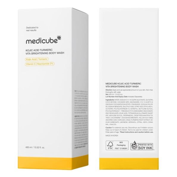Medicube’s Kojic Acid Tumeric Vita Brightening Body Wash combines the brightening properties of kojic acid and turmeric to enhance skin’s radiance while deeply cleansing. This luxurious body wash revitalizes skin, leaving it refreshed and luminous with every use, making it perfect for those seeking a brighter complexion.