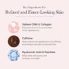 - Refined & Firmer-Looking Skin: A powerful blend of PDRN and Caffeine supports the skin’s moisture barrier while enhancing skin’s natural contours for a firmer, more refined appearance.
