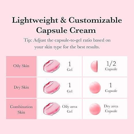 - [Customizable Capsule Cream for All Skin Types] A mild, gentle formula designed for all skin types, featuring a lightweight, non-sticky finish for everyday use. *We recommend applying a small amount of the product behind your ear to check for any allergic reactions before using it on your face.