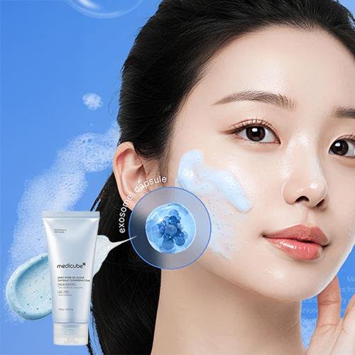 Medicube Zero Pore Clearing Capsule Cleansing Foam delivers deep pore cleansing with exosome capsules that are 500 times smaller than pores, allowing them to intensively remove sebum and exfoliate from within.