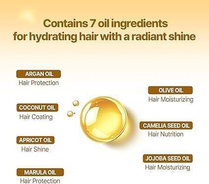 Infused with a powerful blend of seven nourishing oils—including Moroccan argan, coconut, camellia, jojoba, olive, apricot, and marula (birrea) seed oils—this lightweight serum deeply hydrates and revitalizes dry, rough, and split-prone hair without weighing it down.