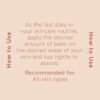 - At the last step of skin care, apply proper amount on the face along skin texture evenly and pat gently for absorption.