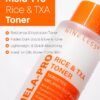 - This toner is formulated with 72.49% Rice Seed Water and 19,800ppm Tranexamic Acid that helps brighten and even out the skin tone while providing soothing relief from irritation.