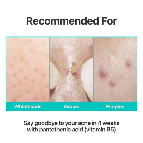 - Infused with Pantothenic Acid (Vitamin B5), it minimises breakouts by 60.54% and helps clear clogged pores. Over 4 weeks of use, it improves skin health and reduces excess oil, making it a great choice for oily or combination skin.