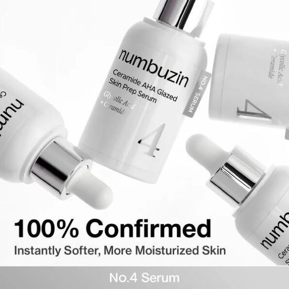 NUMBUZIN No.4 Ceramide AHA Glazed Skin Prep Serum is a specialized “prep” treatment designed to create the perfect canvas for makeup or a flawless “glass skin” routine.