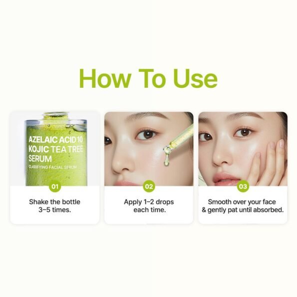 - This serum consists of Tea Tree Oil and Azelaic Acid, which helps improve acne and marks, and is fast-acting.