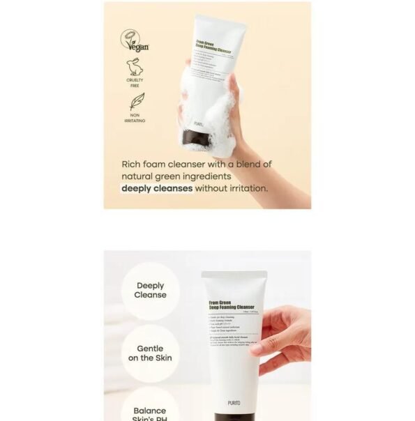 Cleanse deeply yet gently with Purito SEOUL From Green Deep Foaming Cleanser (150ml) — a pH-balanced, vegan facial cleanser that removes impurities and makeup residue without stripping your skin.