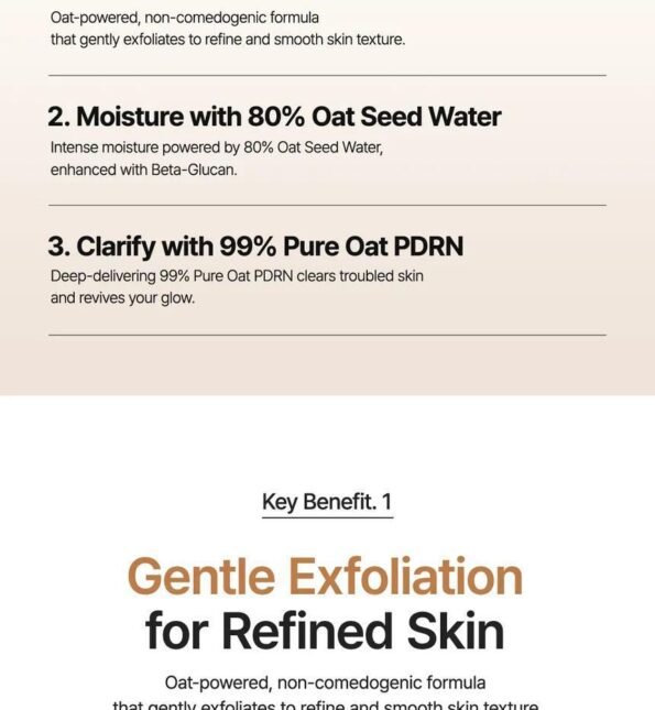 - [Gentle Exfoliation for Refined Skin] – Powered by a non-comedogenic, oat-based formula that gently removes dead skin cells and smooths uneven texture without irritation. Ideal for blemish-prone or sensitive skin seeking daily exfoliation without harsh acids.