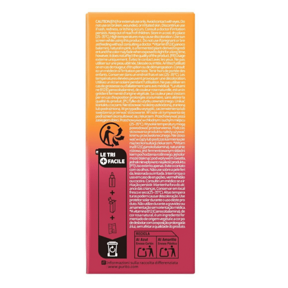 The pink formula, which brightens uneven skintone, is naturally colored by Pink Vitamin B12 and does not stain the skin. Store in a sealed container, away from direct sunlight, at 59-77°F for optimal preservation.