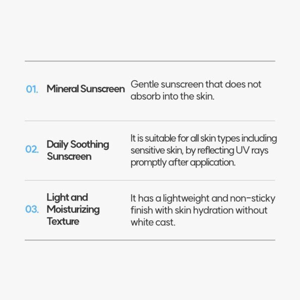 - A lightweight moisturizing physical sunscreen formulated with Jeju Stellaria Media Extract to strengthen skin barrier and boost skin hydration level, while defending skin against UV rays with broad spectrum SPF50+ PA++++.