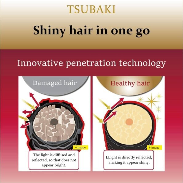 Rich in beauty ingredients and advanced penetration technology, it repairs damage, deeply moisturizes and leaves hair soft, shiny and scented with camellia.