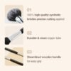 Convenient to carry, allowing you to express your beauty anytime and anywhere, regardless of time and place. Comes with a pouch and brush cover for clean portability anywhere. Antibacterial copper ferrule and stable grip.