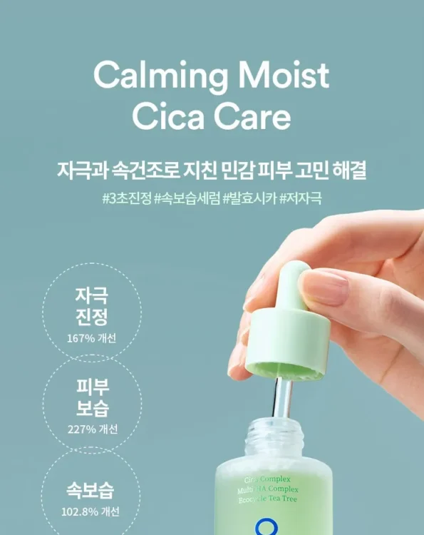 A soothing Serum containing Cica Complex, multiple Hyaluronic Acid types, and Tea Tree Extract that absorbs refreshingly to the skin to soothe and moisturize even sensitive skin.
