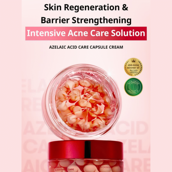 - This Azelaic Acid capsule cream helps control excess oil and sebum production while soothing inflammation for acne-prone skin.